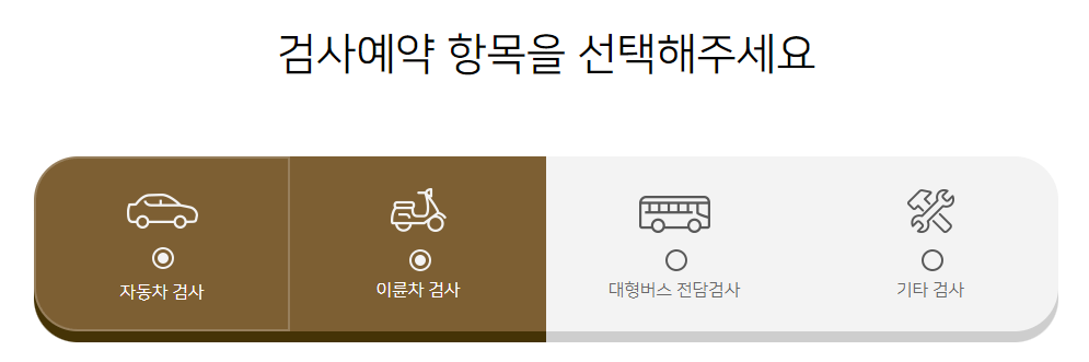 | 차종 선택 | 예약할 차량의 종류를 선택하고 검사 유형을 결정합니다. |