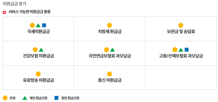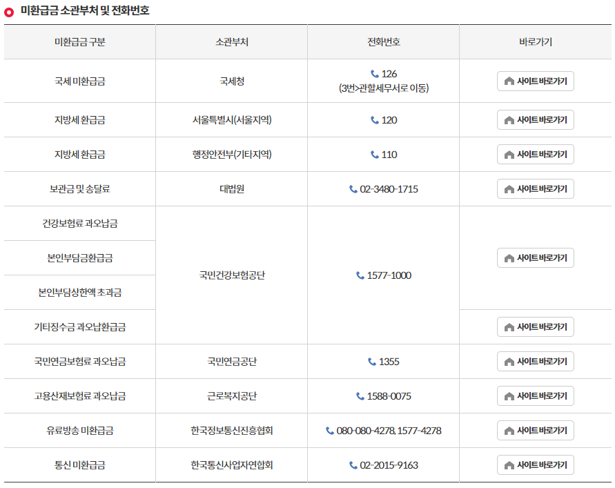 - 모든 종류의 환급금을 한 번에 확인하고 싶다면, 환급금 조회 바로가기 서비스를 이용합니다.
