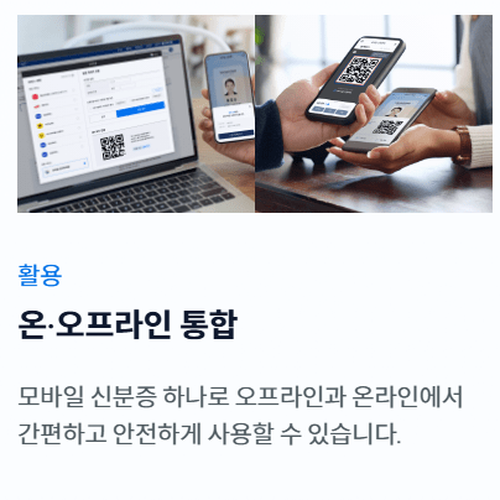 모바일 신분증은 오프라인뿐만 아니라 온라인에서도 사용할 수 있습니다. 공공기관, 금융업무, 성인 인증, 렌터카 및 공유 킥보드 대여, 온라인 신원 확인 등 다양한 분야에서 활용 가능합니다.